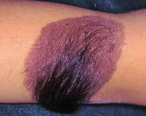 黒あざの多くは出生時からあり、毛が生えているものもあります。