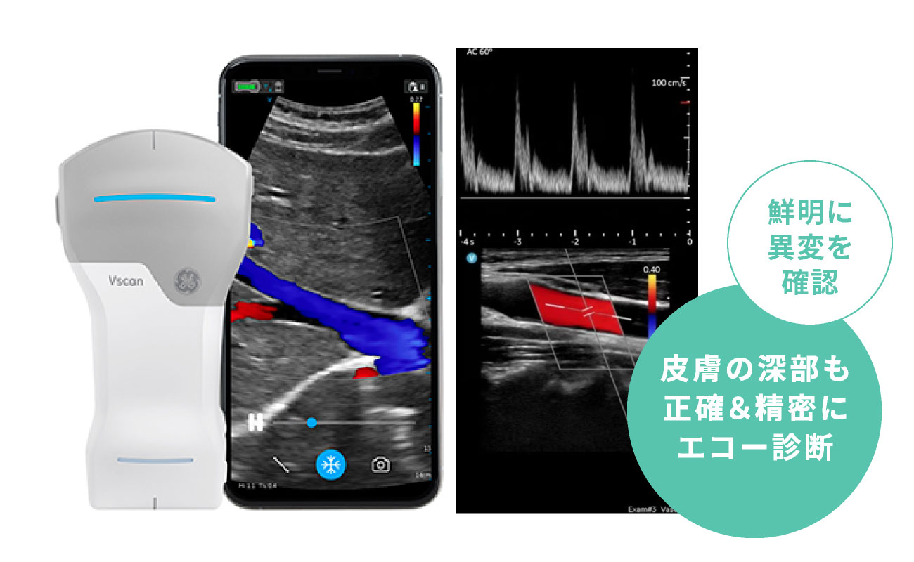 皮膚の下にしこりが触れる、など皮膚表面からは直接見えないできものでも、手術前に最新の皮膚超音波検査で精査することが可能です。