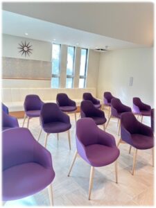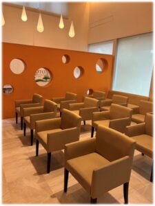❇️待合室は、茶色の椅子がある待合室と紫色